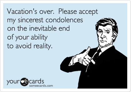 I’m running down the clock on my last few hours of mid-summer vacation doing laundry, making dinner, and generally trying to smooth the transition back to work tomorrow. I’m not going to lie, there my have been a FML moment when I cracked my eyes this morning and realized I was 24