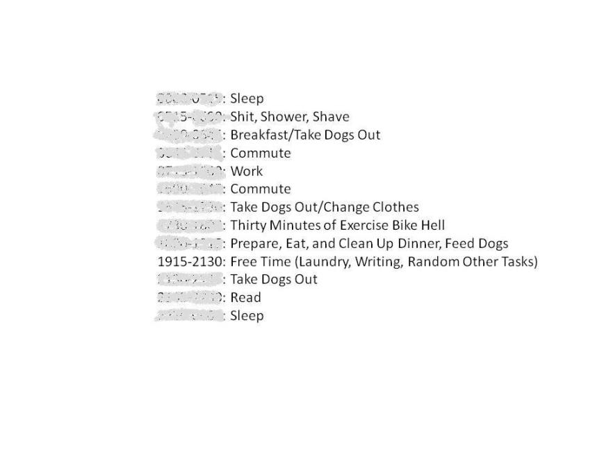 * And yes, the hours are blurred because posting the exact times you do things regularly on the internet is pretty dumb, but not having any graphic way to show where my day goes leaves the post a little flat, so that’s my compromise.