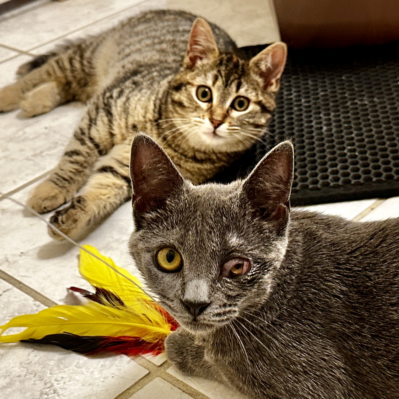 Anyaka has turned out to be quite the trooper. Despite our rough start and her being thoroughly annoyed with the current medical regimen, she’s purring up a storm and remarkably affectionate. Cordy remains uncertain of this new home. However, she has allowed me to touch her briefly while distracted with stinky food or toys. It’s slow progress all around, but it’s progress nonetheless.