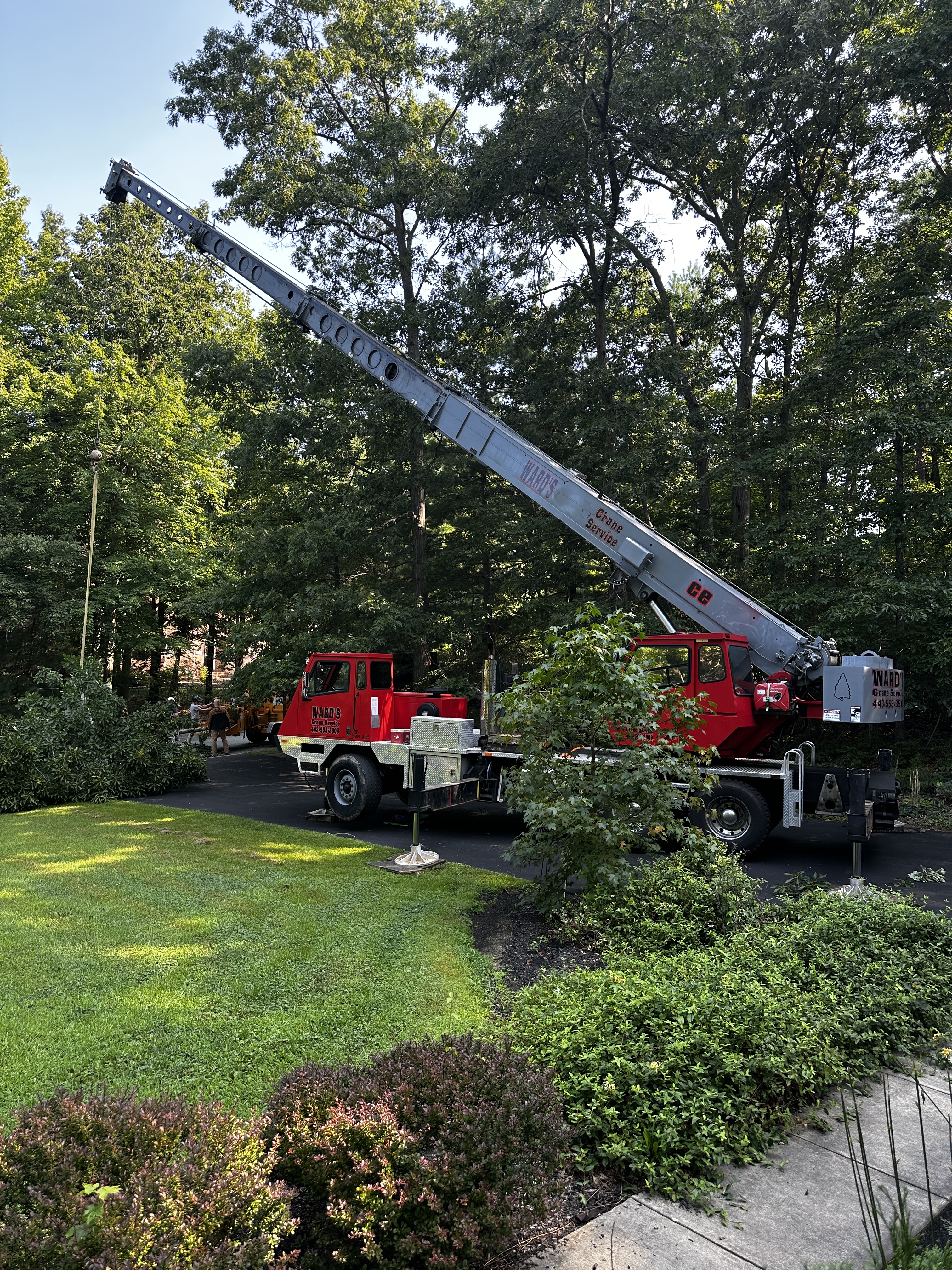 That’s all a lot of lead up to say that I hired an arborist to deal with what was well beyond my own scope and abilities as a homeowner. Over the course of a day, his team took down the dead oak as well as a living one that hung precariously over the garage. They also cleared out several smaller trees that all overhung my bedroom. Due to their problematic locations, nearly every cut was tied off and hoisted by crane – some to be disposed of naturally in the woods and some to be hauled off site.