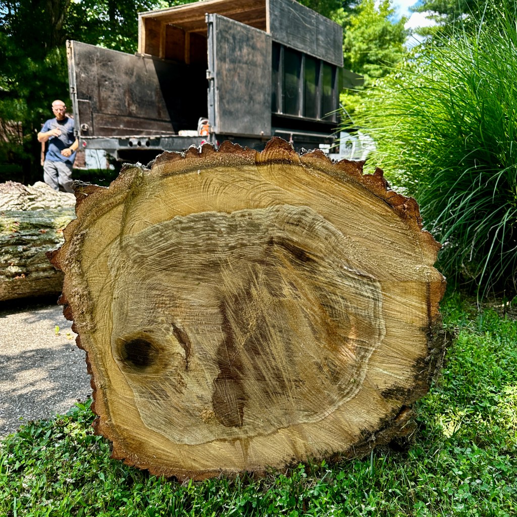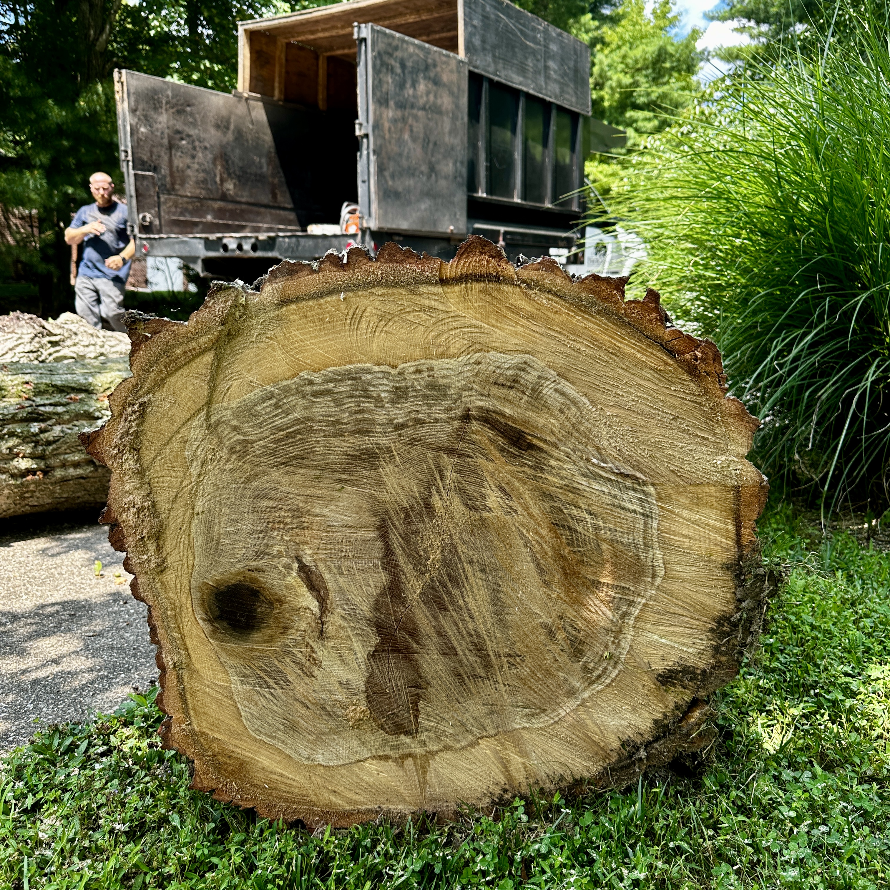 Each lift weighed in somewhere around 3000 pounds according to the crane operator. Having a ton and half of dead weight flying over the house all afternoon was, in a word, unsettling. It absolutely unlocked a brand new variety of homeowner fear. I hate the idea of taking down perfectly healthy trees, but after seeing how big these oaks are once they were on the ground, the thought of any of them landing on the house is nightmare fuel.